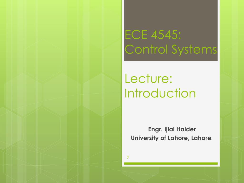 ECE 4545:Control SystemsLecture:Introduction Engr. Ijlal Haider University of Lahore, Lahore