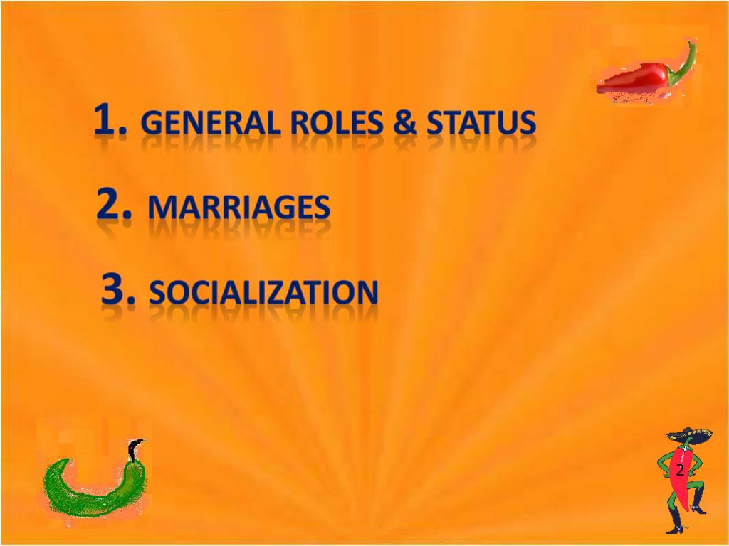 M exican M arital. C ommunication. By: Panhia Thao. 1. 1. General roles & status. 2 . Marriages. 3. Socialization. 2. General roles & status. ~ Very Traditional sex roles and stereotypes within the Mexican society. ( Cezar Romero and Nava Gibbons )