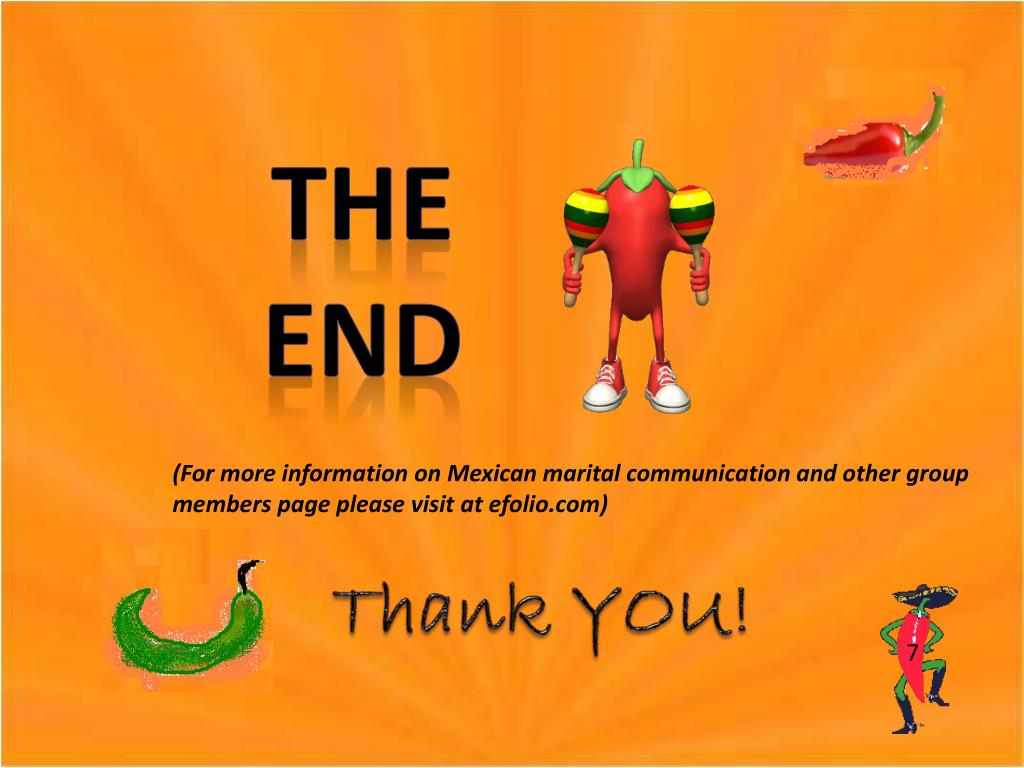 THE END (For more information on Mexican marital communication and other group members page please visit at efolio.com) Thank YOU! 7