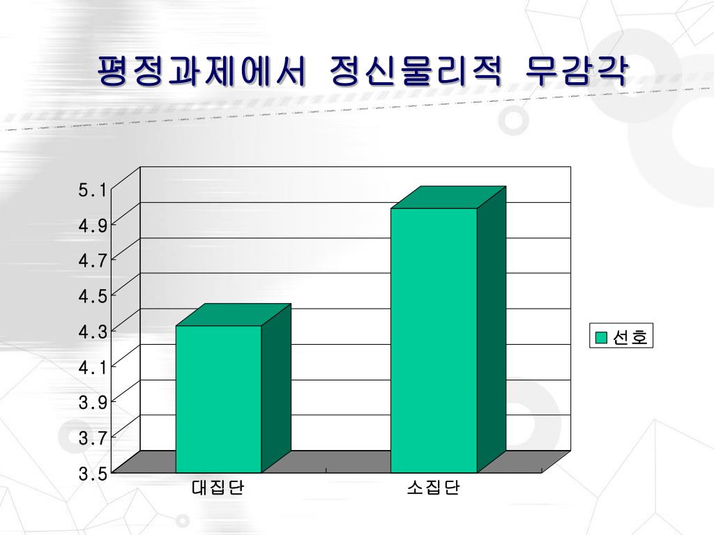 연 구 배 경 • 선행연구의 부족: Fetherstonhaugh, 등, 1997; Baron, 1997;Jenni, 등, 1997; Friedrich, 등, 1999 • Friedrich등(1999)의 연구결과에서 나타나는 의문: 정신물리적 무감각이 감정적 사고의 결과라고 보기 어렵다. 예) 특히 경제적 관점의 효과. • 정신물리적 무감각 현상에 영향을 미치는 요인들과 기존 이론의 검증 필요.