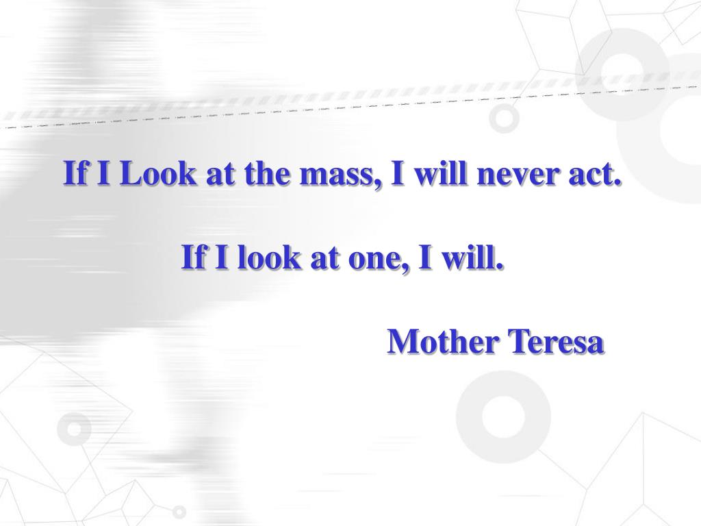 If I Look at the mass, I will never act. If I look at one, I will. Mother Teresa