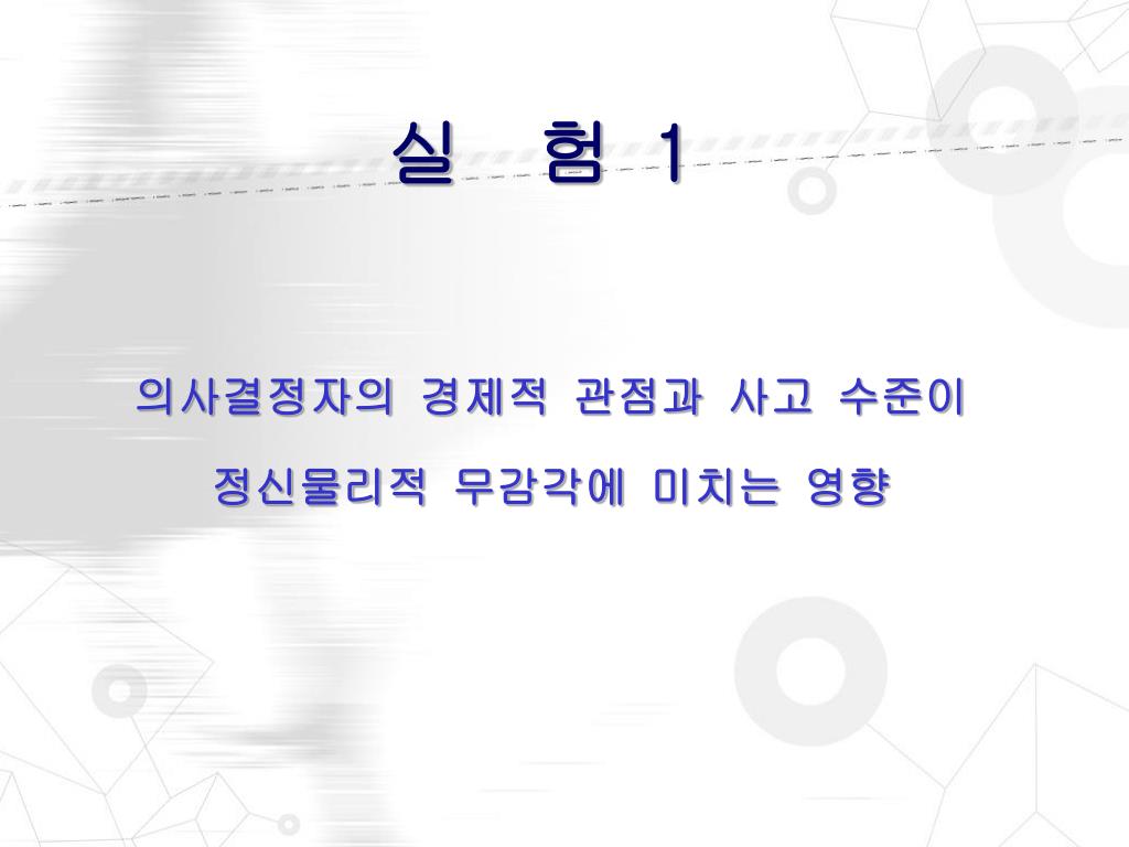 실 험 1 의사결정자의 경제적 관점과 사고 수준이 정신물리적 무감각에 미치는 영향
