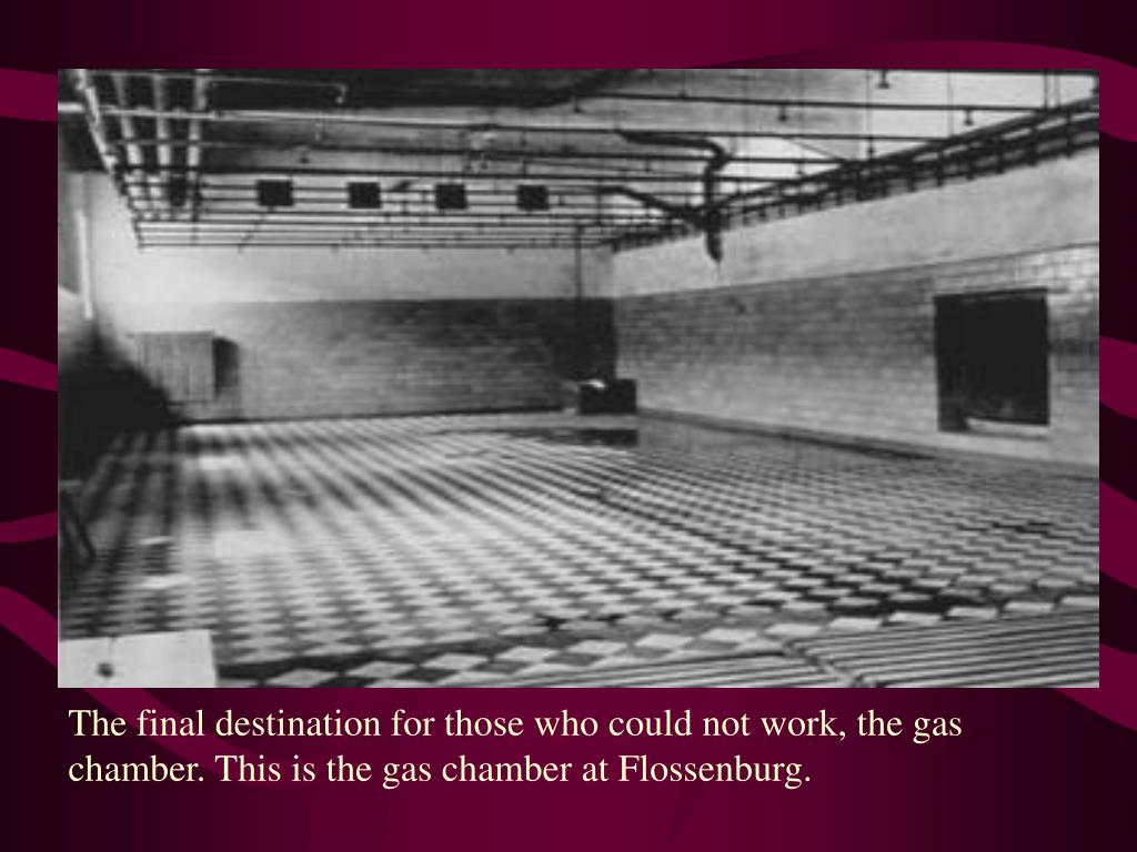 The final destination for those who could not work, the gas chamber. This is the gas chamber at Flossenburg.