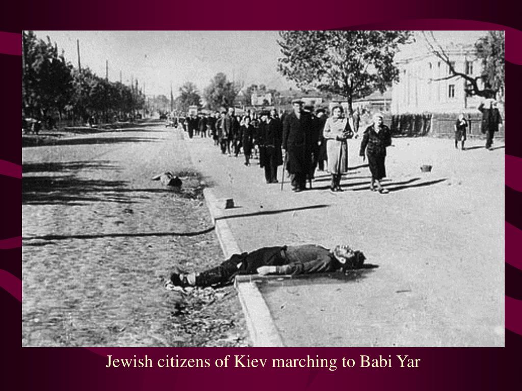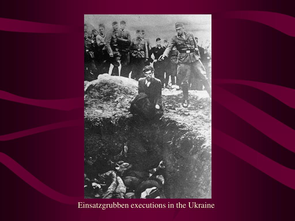 Einsatzgrubben • Not all murdered Jews were killed in the camps. A mobile killing force called the Einsatzgrubben conducted many executions, particularly in the Ukraine and Baltic states. Jews from Lubny (Ukraine) assembled just prior to execution