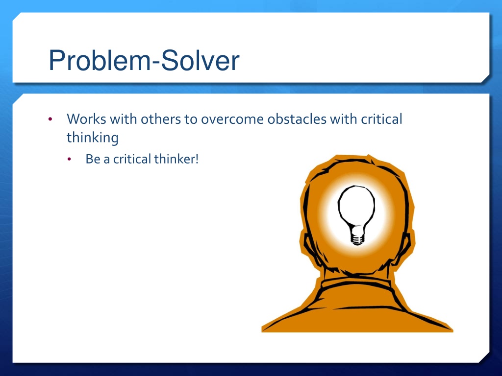 Problem-Solver • Works with others to overcome obstacles with critical thinking • Be a critical thinker!