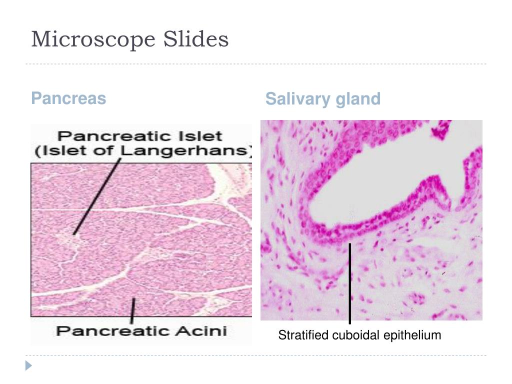 Microscope Slides Pancreas Salivary gland Stratified cuboidal epithelium