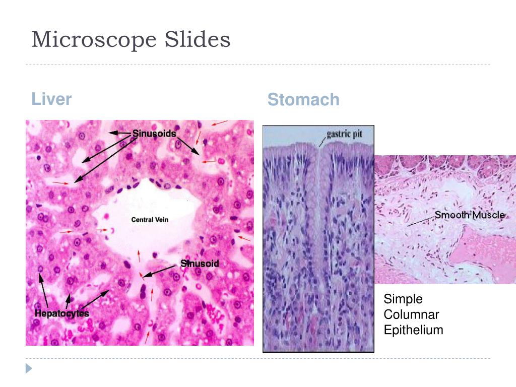 Microscope Slides Liver Stomach Simple Columnar Epithelium