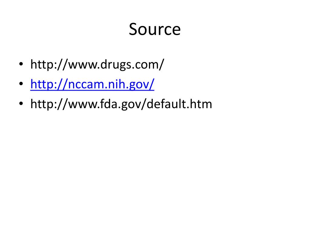 Source • http://www.drugs.com/ • http://nccam.nih.gov/ • http://www.fda.gov/default.htm