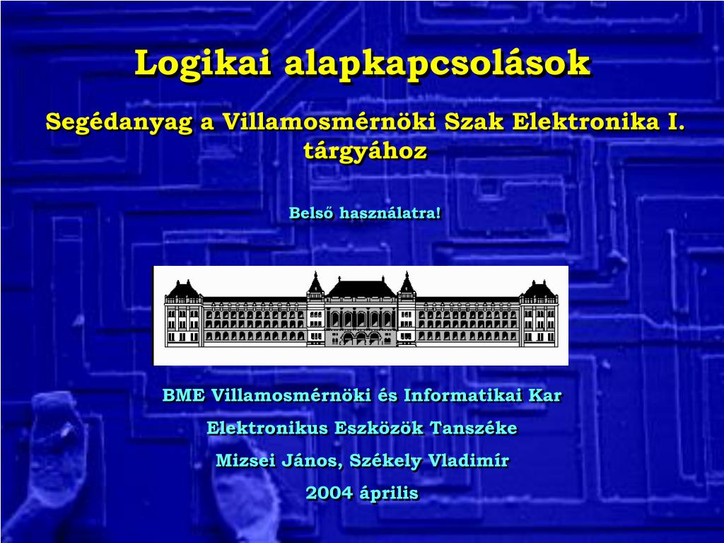 Logikai alapkapcsolások Segédanyag a Villamosmérnöki Szak Elektronika I. tárgyához Belső használatra! BME Villamosmérnöki és Informatikai Kar Elektronikus Eszközök Tanszéke Mizsei János, Székely Vladimír 2004 április