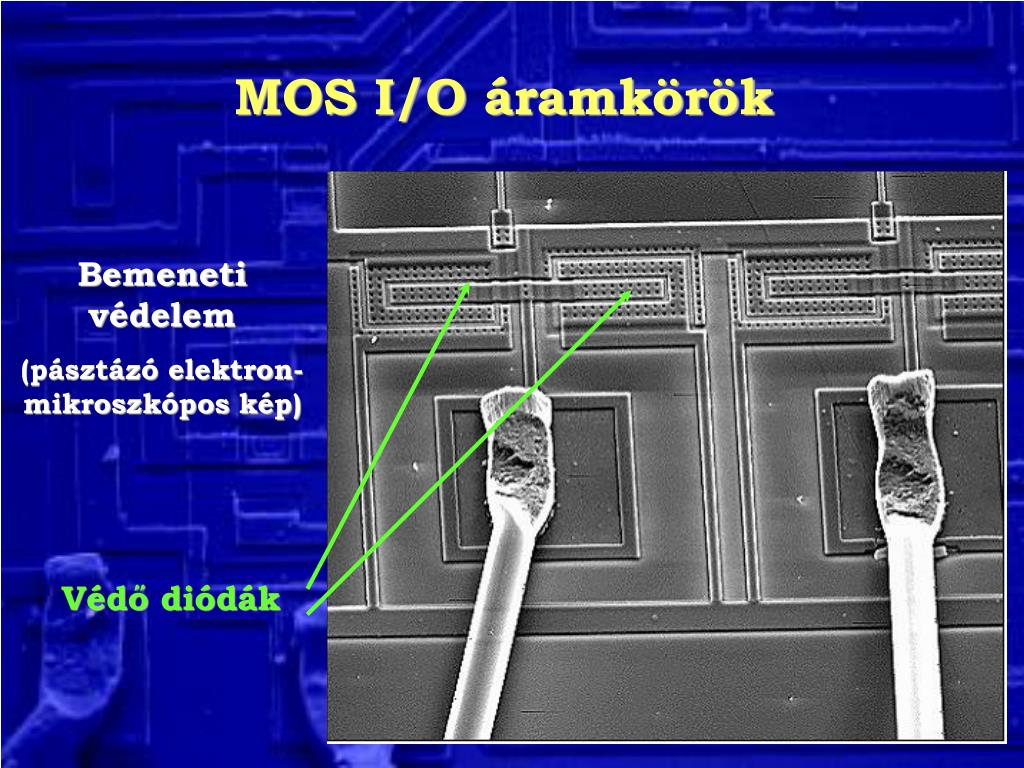MOS I/O áramkörök Bemeneti védelem (pásztázó elektron-mikroszkópos kép) Védő diódák