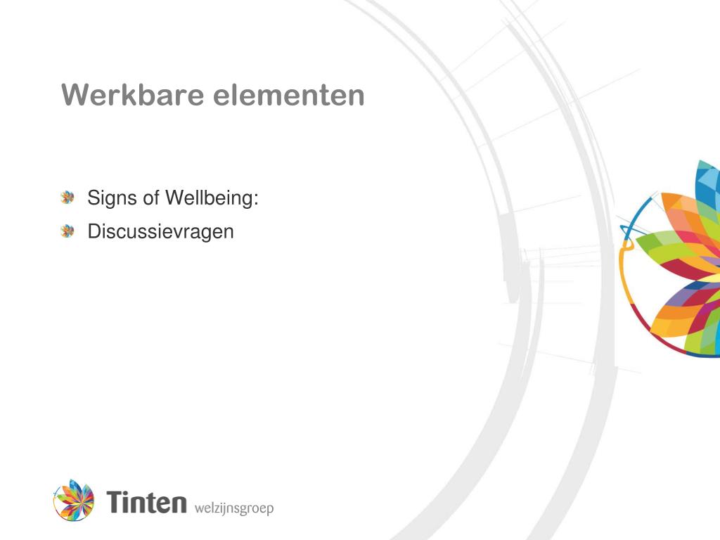 Werkbare elementen • Signs of Wellbeing: • Discussievragen