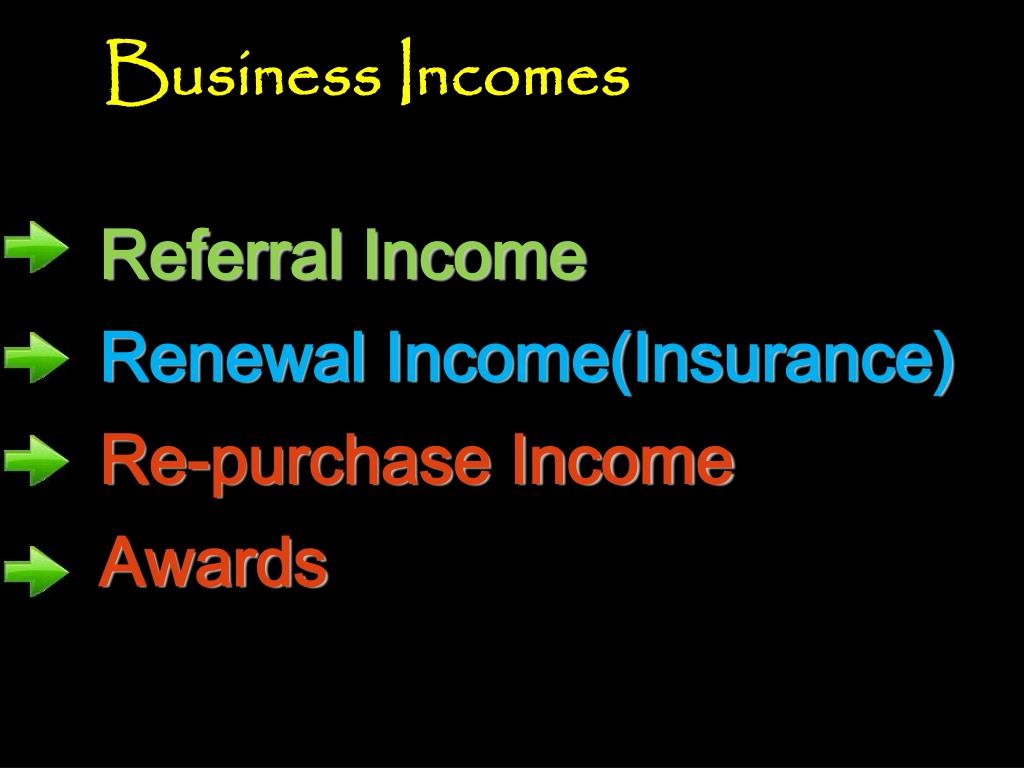 Business Incomes Referral Income Renewal Income(Insurance) Re-purchase Income Awards