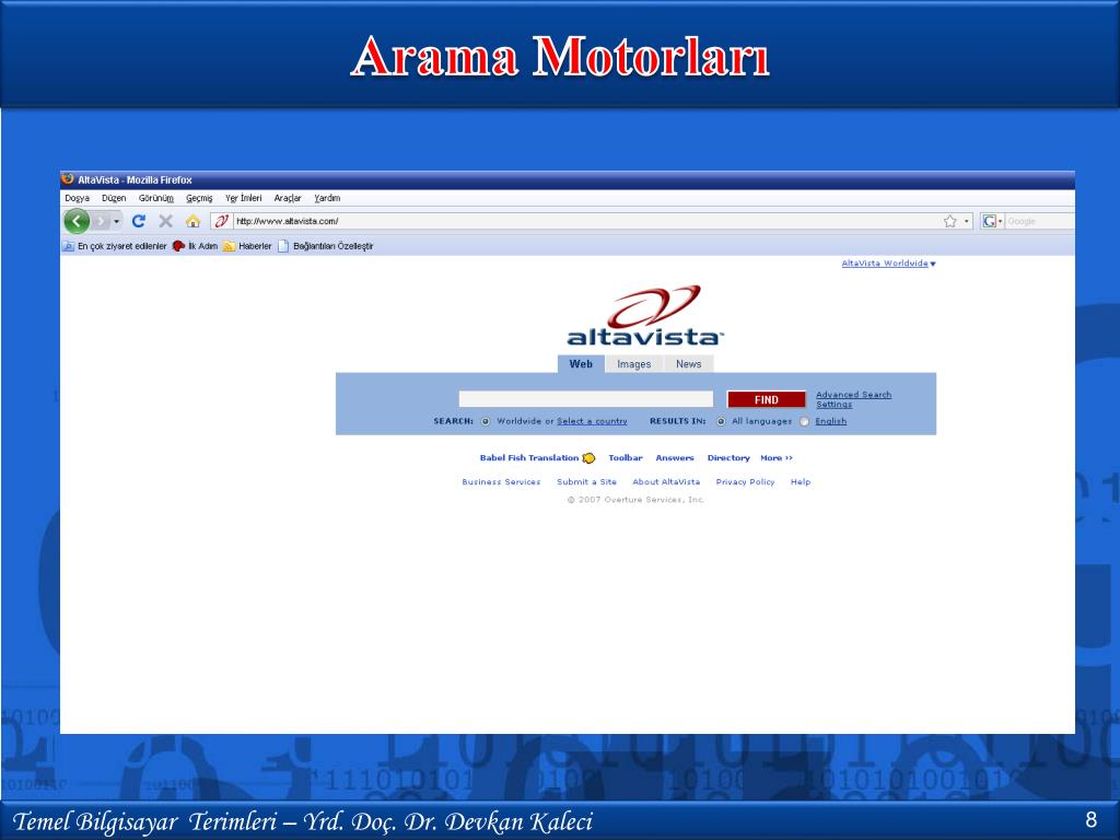 Arama Motorları Dr. Devkan Kaleci Temel Bilgisayar Terimleri – Yrd. Doç. Dr. Devkan Kaleci