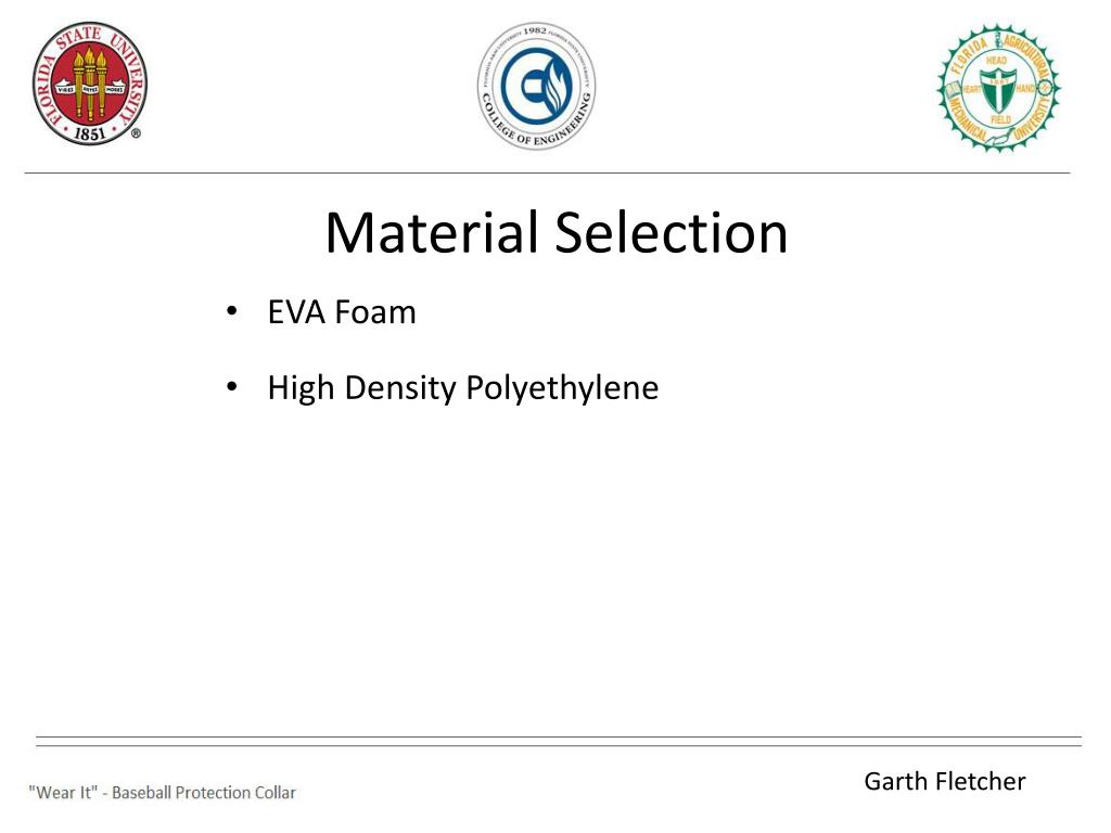 Material Selection • EVA Foam • High Density Polyethylene Garth Fletcher