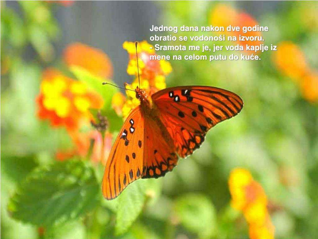 Jednog dana nakon dve godine obratio se vodonoši na izvoru. - Sramota me je, jer voda kaplje iz mene na celom putu do kuće.