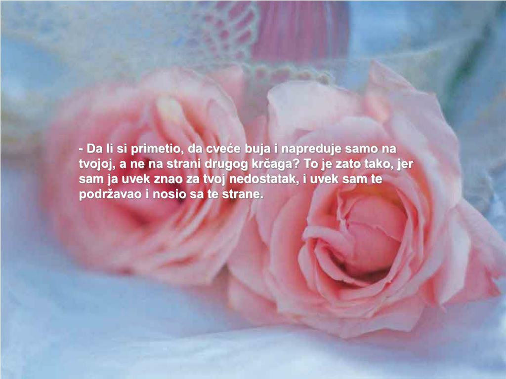 - Da li si primetio, da cveće buja i napreduje samo na tvojoj, a ne na strani drugog krčaga? To je zato tako, jer sam ja uvek znao za tvoj nedostatak, i uvek sam te podržavao i nosio sa te strane.