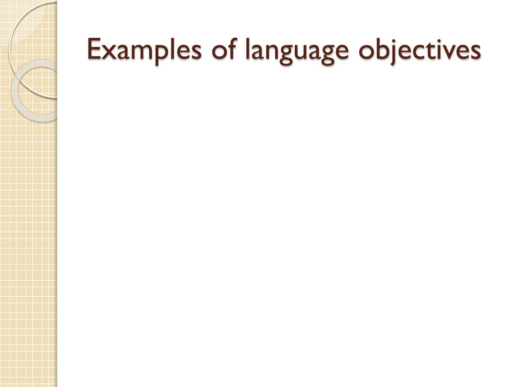 Explicit language objectives • “Students will use adjectives to describe the characters in the story.” • “Ss will use the sentence starters to express a conclusion: In my opinion, I believe that, I agree with… “ • “Ss will listen for main ideas and supporting details.” • “Ss will use context clues (i.e., grammar, punctuation, logic, antonyms, appositives) to understand the meaning of unfamiliar words)