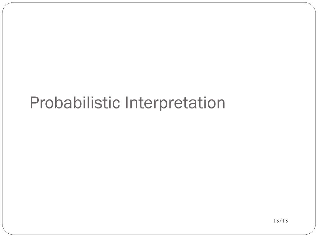 Spread/Precision parameter • The greater the spread σ2, the more likely xis (away from the mean). • The greater the precision β, the less likely x is. ln[p(x)] 1/σ2 = β