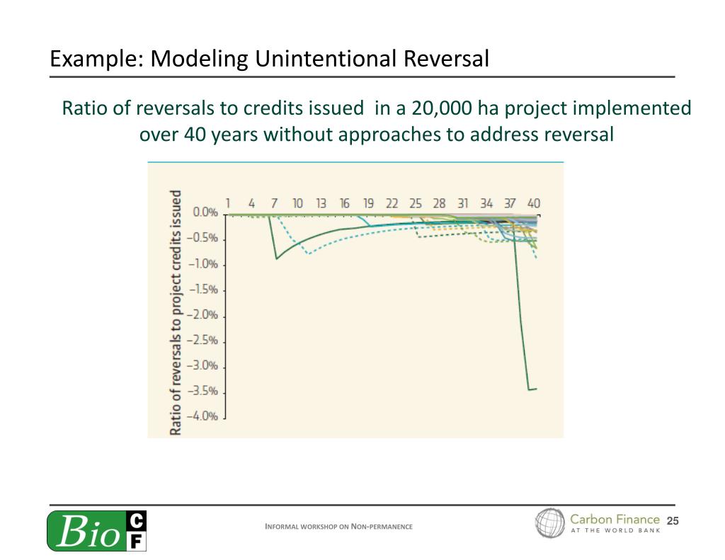 Example: Modeling Unintentional Reversal Ratio of reversals to credits issued in a 20,000 ha project implemented over 40 years without approaches to address reversal