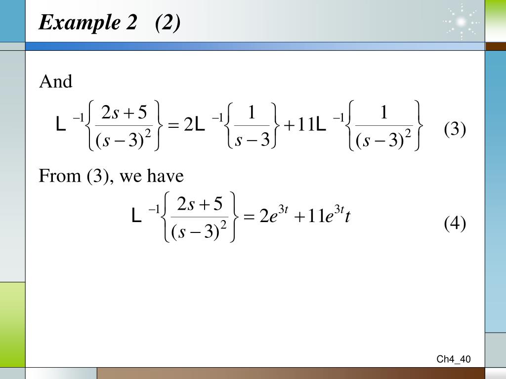 Example 3: Partial Fraction Find SolutionUsing partial fractionsThen (3)If we set s = 1, 2, −4,then