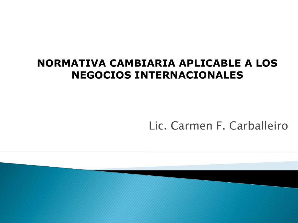 NORMATIVA CAMBIARIA APLICABLE A LOS NEGOCIOS INTERNACIONALES Lic. Carmen F. Carballeiro