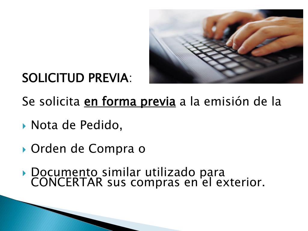 SOLICITUD PREVIA: Se solicita en forma previa a la emisión de la • Nota de Pedido, • Orden de Compra o • Documento similar utilizado para CONCERTAR sus compras en el exterior.