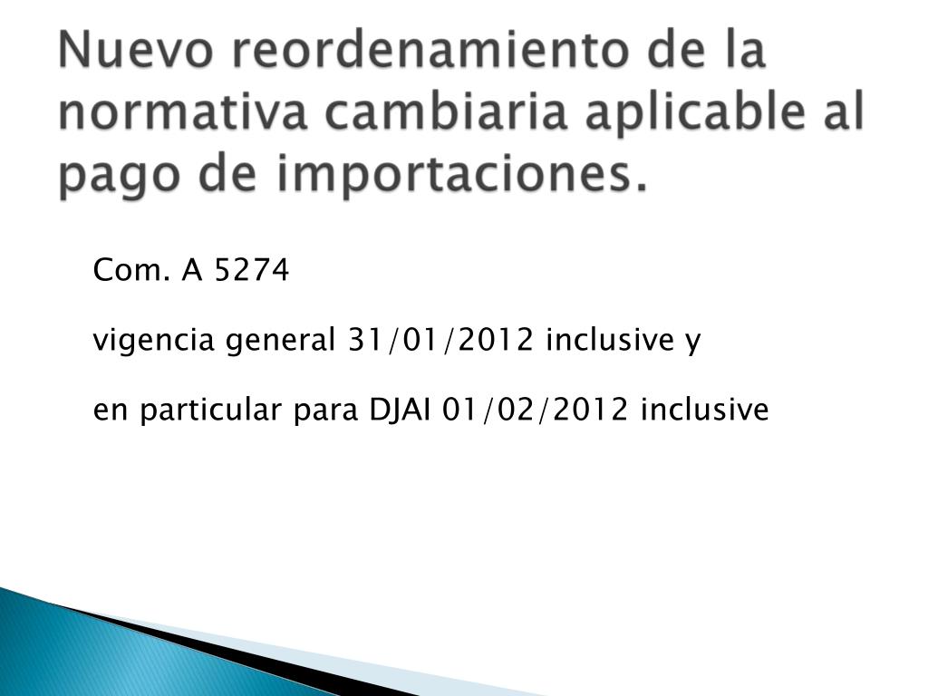 Com. A 5274 vigencia general 31/01/2012 inclusive y en particular para DJAI 01/02/2012 inclusive