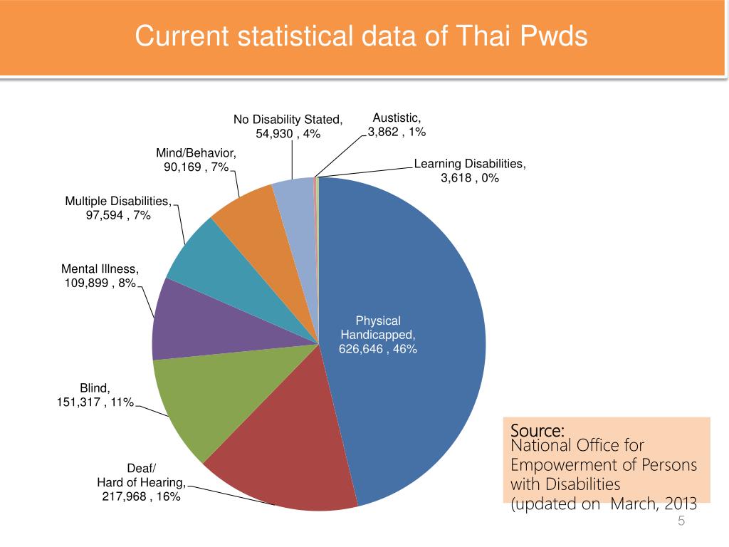 Current statistical data of Thai Pwds Source: National Office for Empowerment of Persons with Disabilities (updated on March, 2013