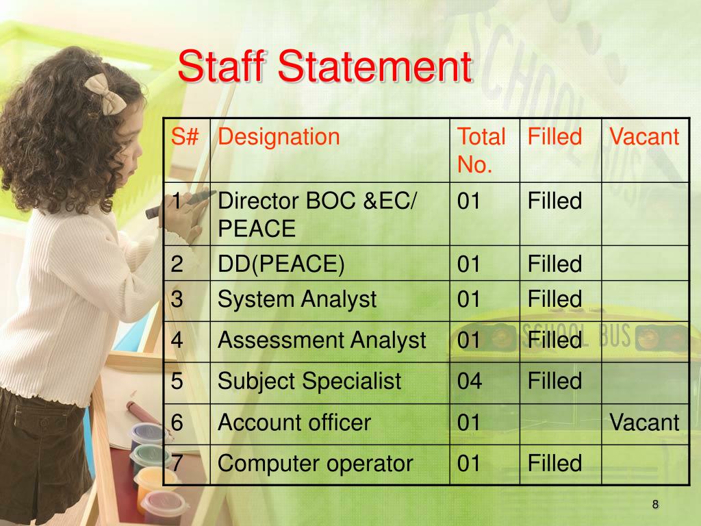 Achievements Conducted National pilot testing in subject of Mathematics, Urdu, Science and SS Conducted National Large Scale testing in subject of Mathematics, Urdu, Science and SS for grade IV and VIII through out province Training imparted SRO,SSS,SS from BOC &EC, PITE, School Teachers in the field of assessment and test item construction according to competencies