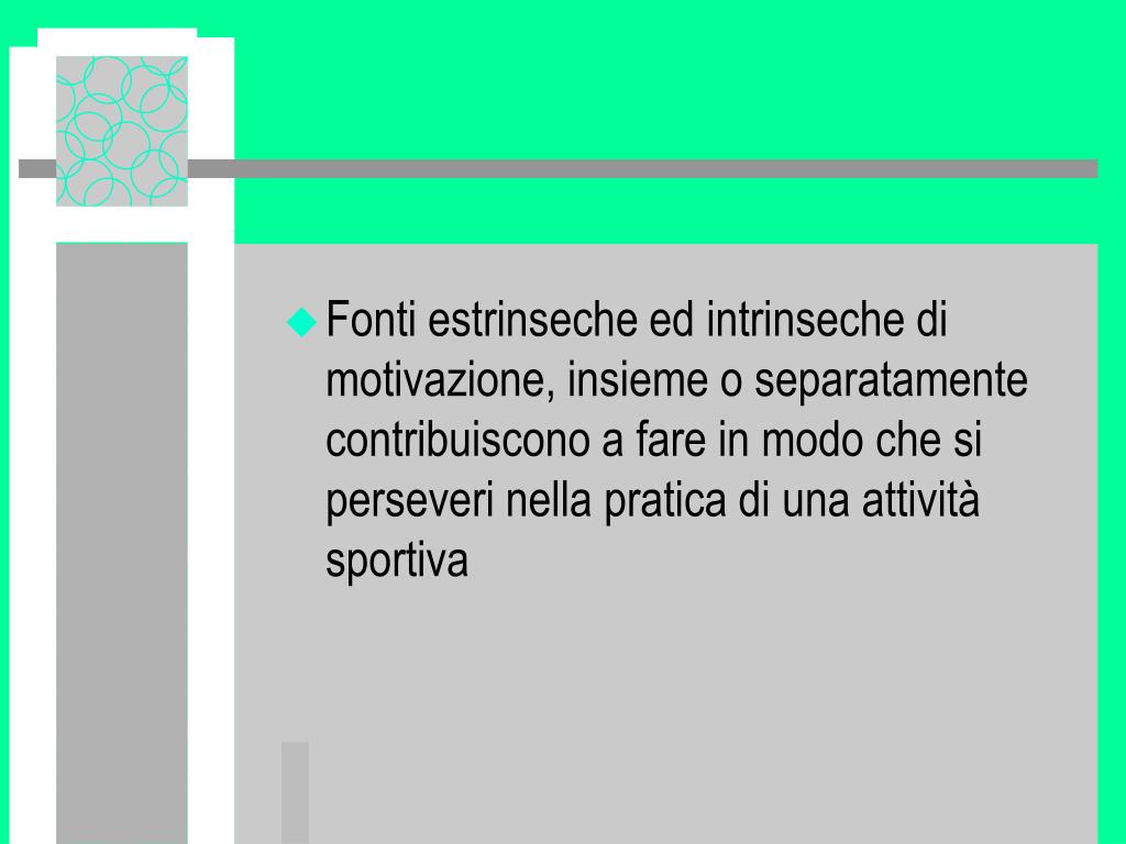 Fonti estrinseche ed intrinseche di motivazione, insieme o separatamente contribuiscono a fare in modo che si perseveri nella pratica di una attività sportiva