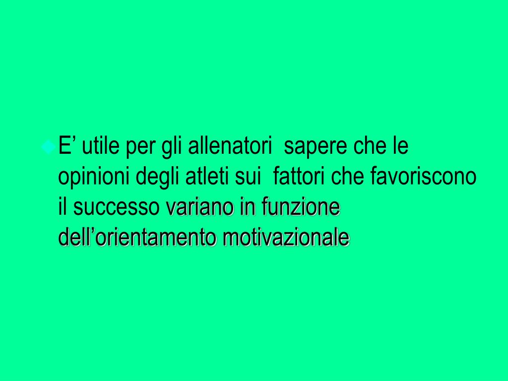 E’ utile per gli allenatori sapere che le opinioni degli atleti sui fattori che favoriscono il successo variano in funzione dell’orientamento motivazionale