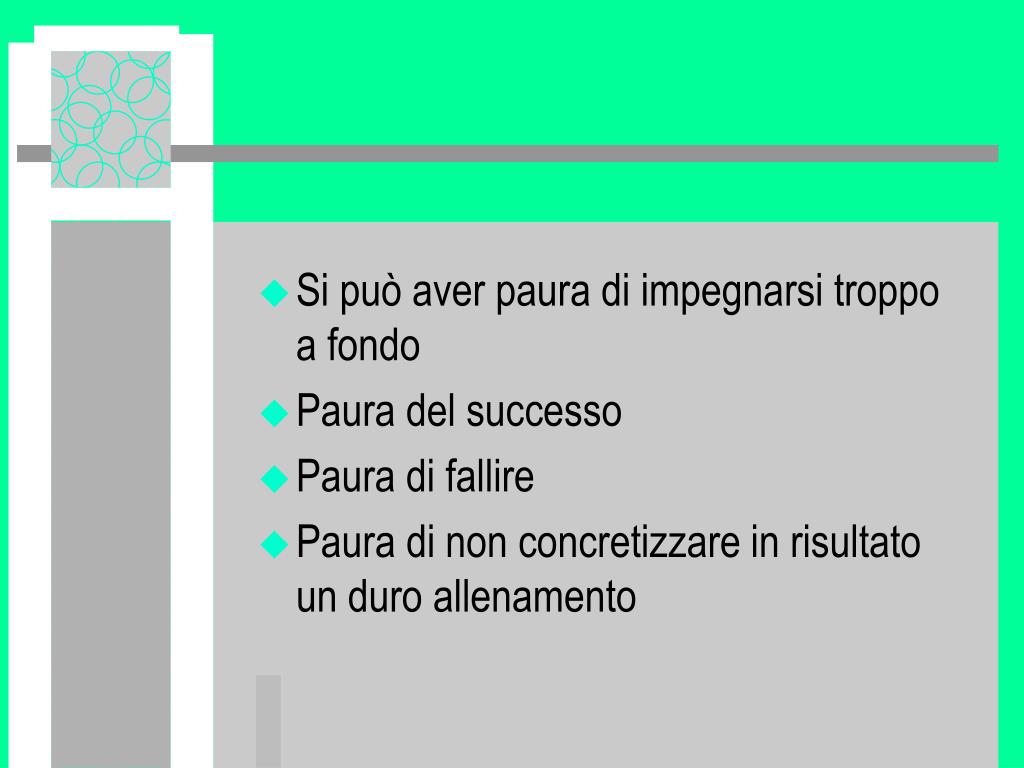Si può aver paura di impegnarsi troppo a fondo • Paura del successo • Paura di fallire • Paura di non concretizzare in risultato un duro allenamento