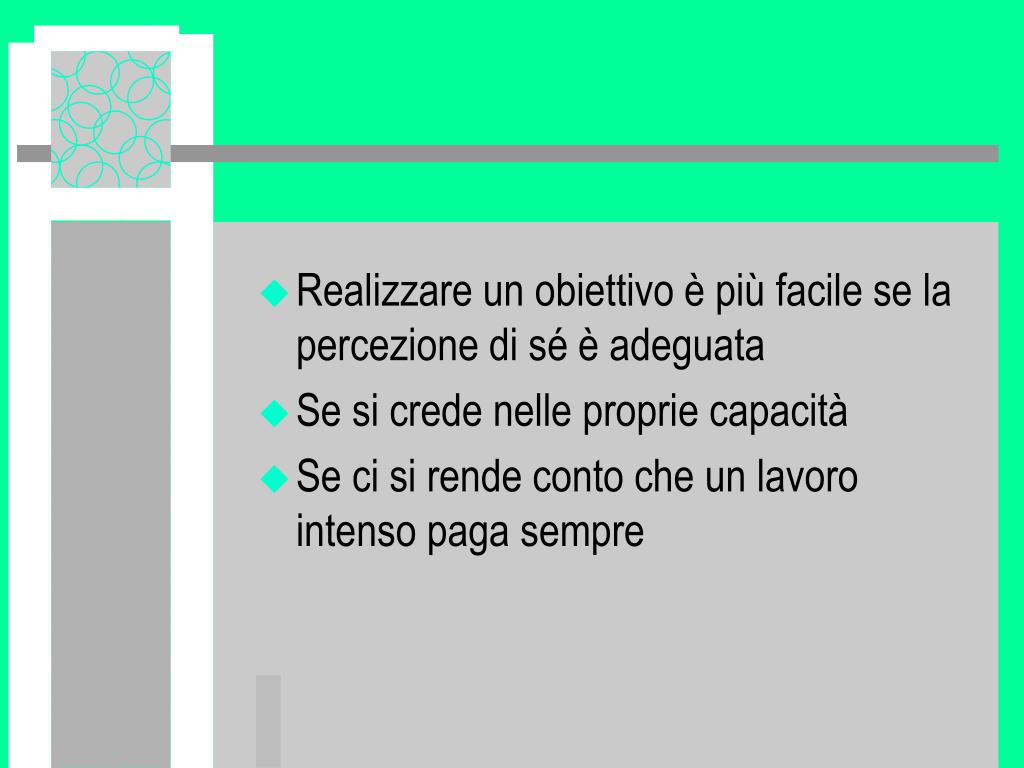 Realizzare un obiettivo è più facile se la percezione di sé è adeguata • Se si crede nelle proprie capacità • Se ci si rende conto che un lavoro intenso paga sempre
