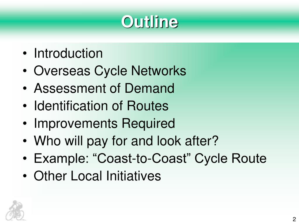 Outline • Introduction • Overseas Cycle Networks • Assessment of Demand • Identification of Routes • Improvements Required • Who will pay for and look after? • Example: “Coast-to-Coast” Cycle Route • Other Local Initiatives