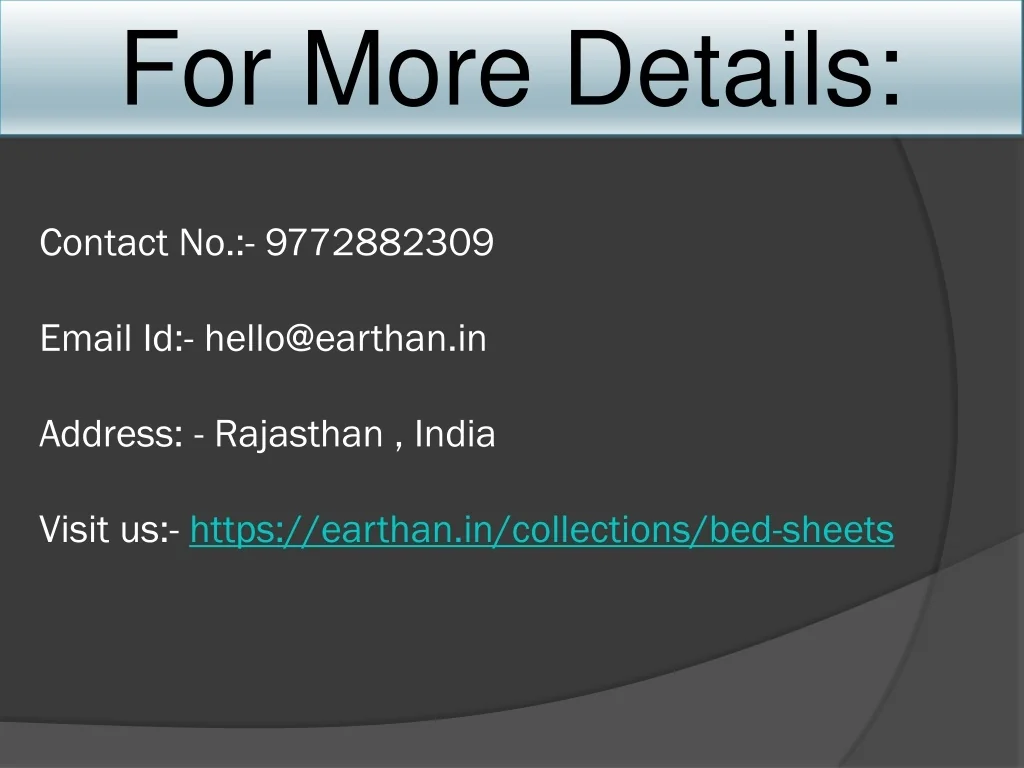 For More Details: Contact No.:- 9772882309Email Id:- hello@earthan.inAddress: - Rajasthan , IndiaVisit us:- https://earthan.in/collections/bed-sheets