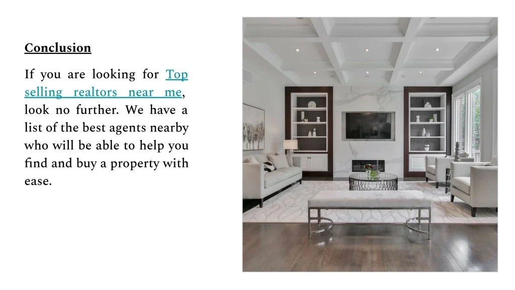 Conclusion If you are looking for Top selling realtors near me, look no further. We have a list of the best agents nearby who will be able to help you find and buy a property with ease.