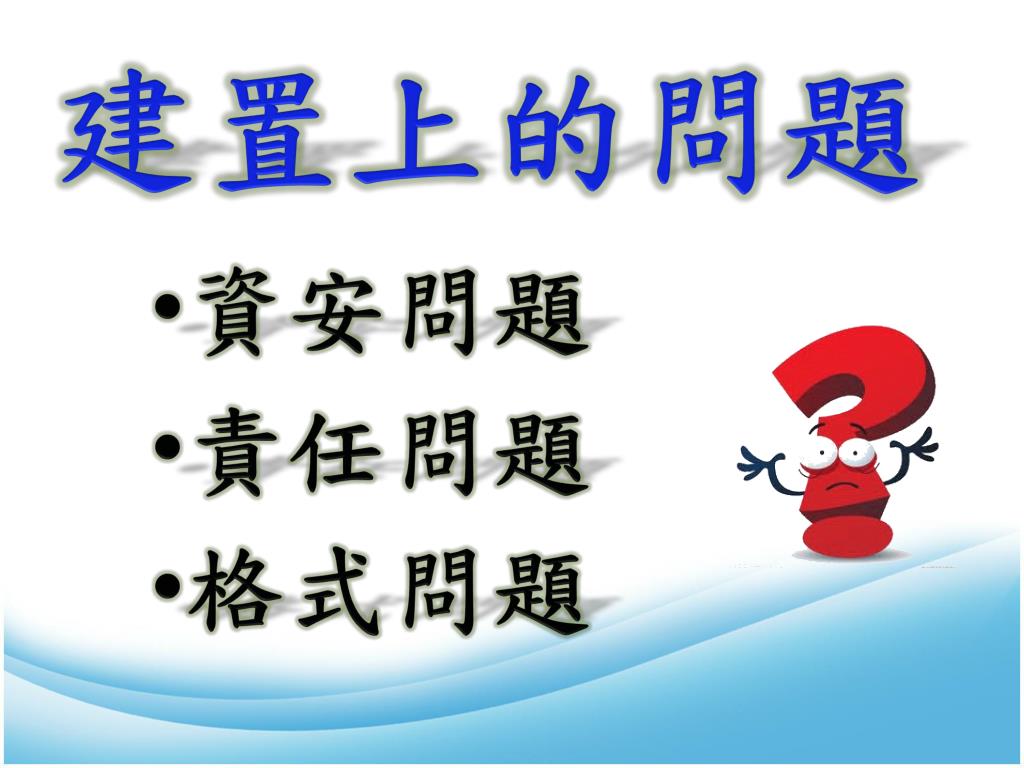 建置上的問題 • 資安問題 • 責任問題 • 格式問題