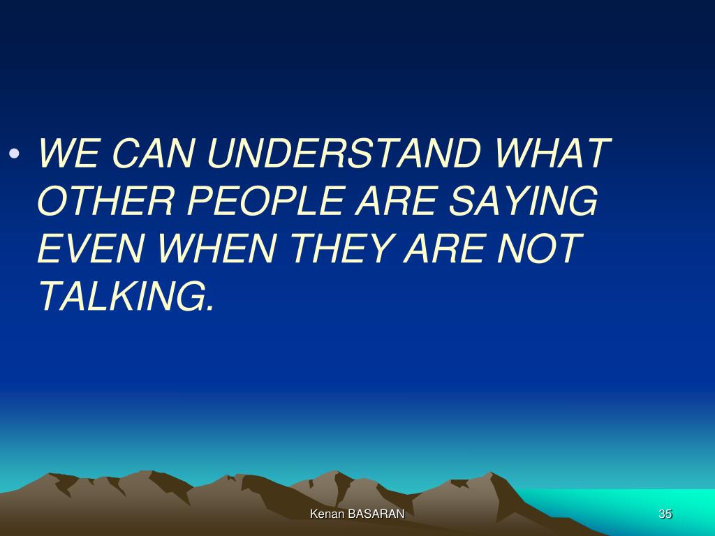 WE CAN UNDERSTAND WHAT OTHER PEOPLE ARE SAYING EVEN WHEN THEY ARE NOT TALKING. Kenan BASARAN
