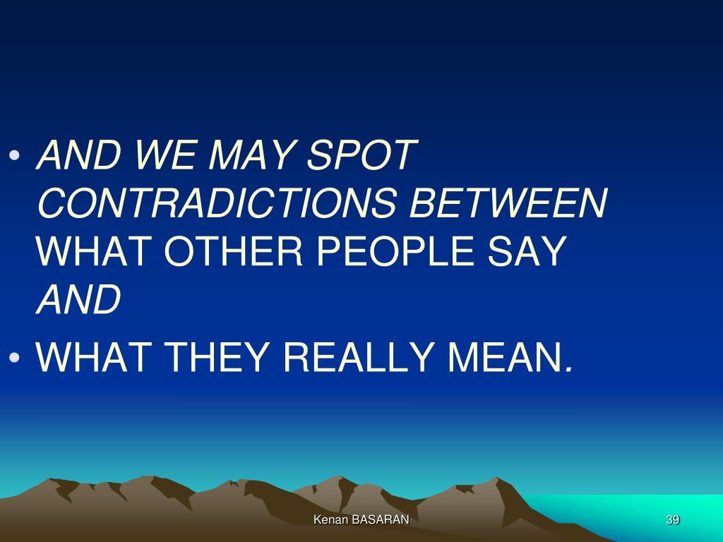 AND WE MAY SPOT CONTRADICTIONS BETWEEN WHAT OTHER PEOPLE SAY AND WHAT THEY REALLY MEAN. Kenan BASARAN