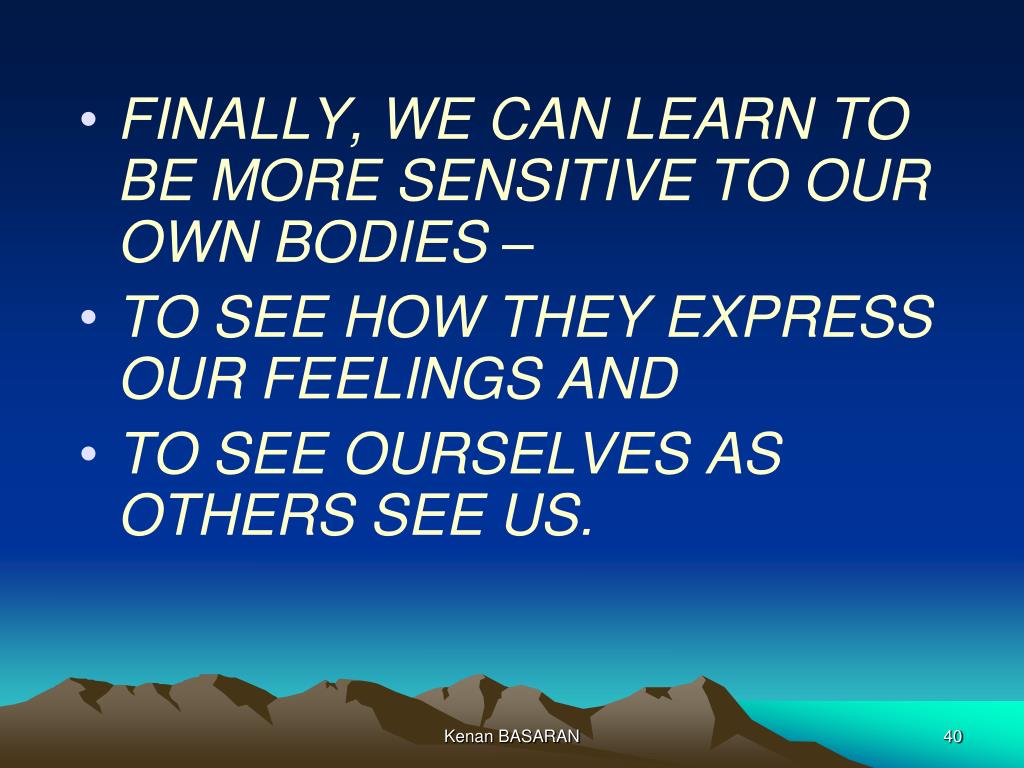 FINALLY, WE CAN LEARN TO BE MORE SENSITIVE TO OUR OWN BODIES – TO SEE HOW THEY EXPRESS OUR FEELINGS AND TO SEE OURSELVES AS OTHERS SEE US. Kenan BASARAN