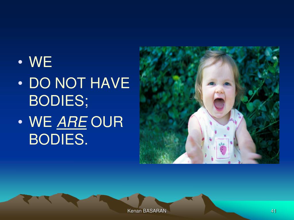 WE • DO NOT HAVE BODIES; • WE ARE OUR BODIES. Kenan BASARAN