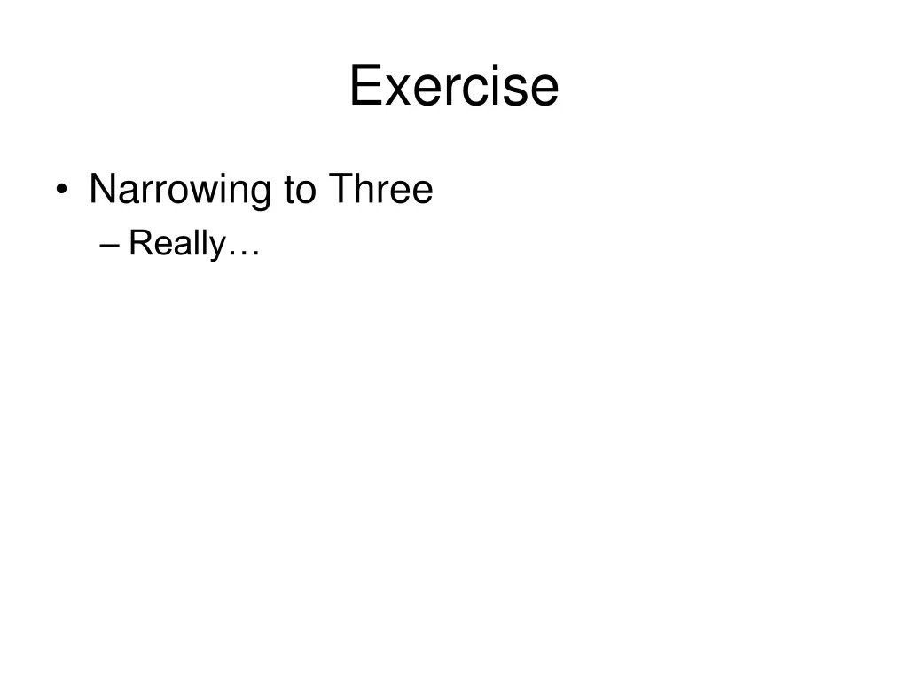 Less is More • Organize your presentations around the three things you want people to remember • Decide in advance what those should be • Focus on those points in your presentation • Eliminate extraneous points • Give exercises to reinforce those points • Repeat those points at the end of the presentation