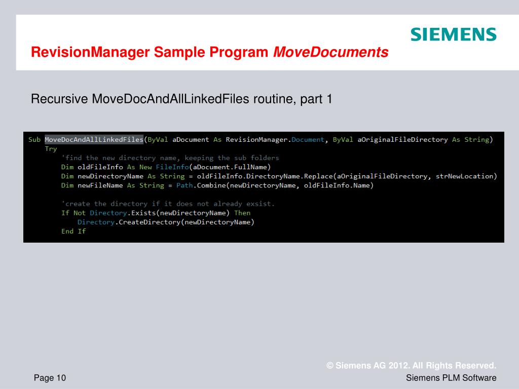 RevisionManager Sample Program MoveDocuments • At the start of the file you will find a program summary.
