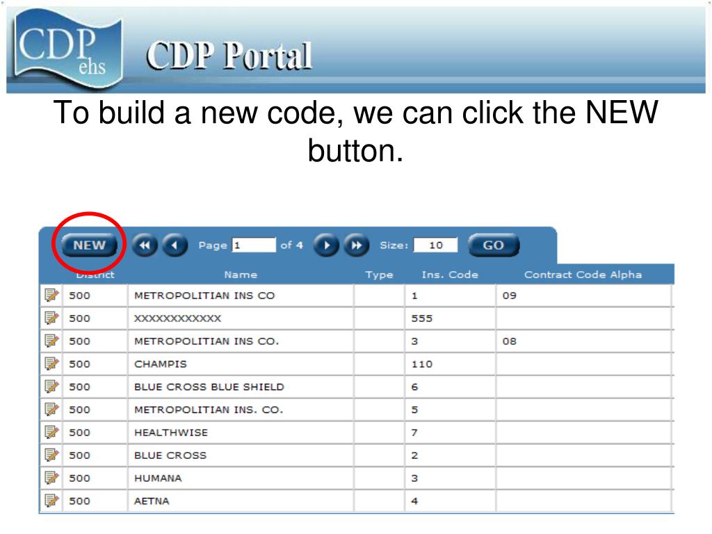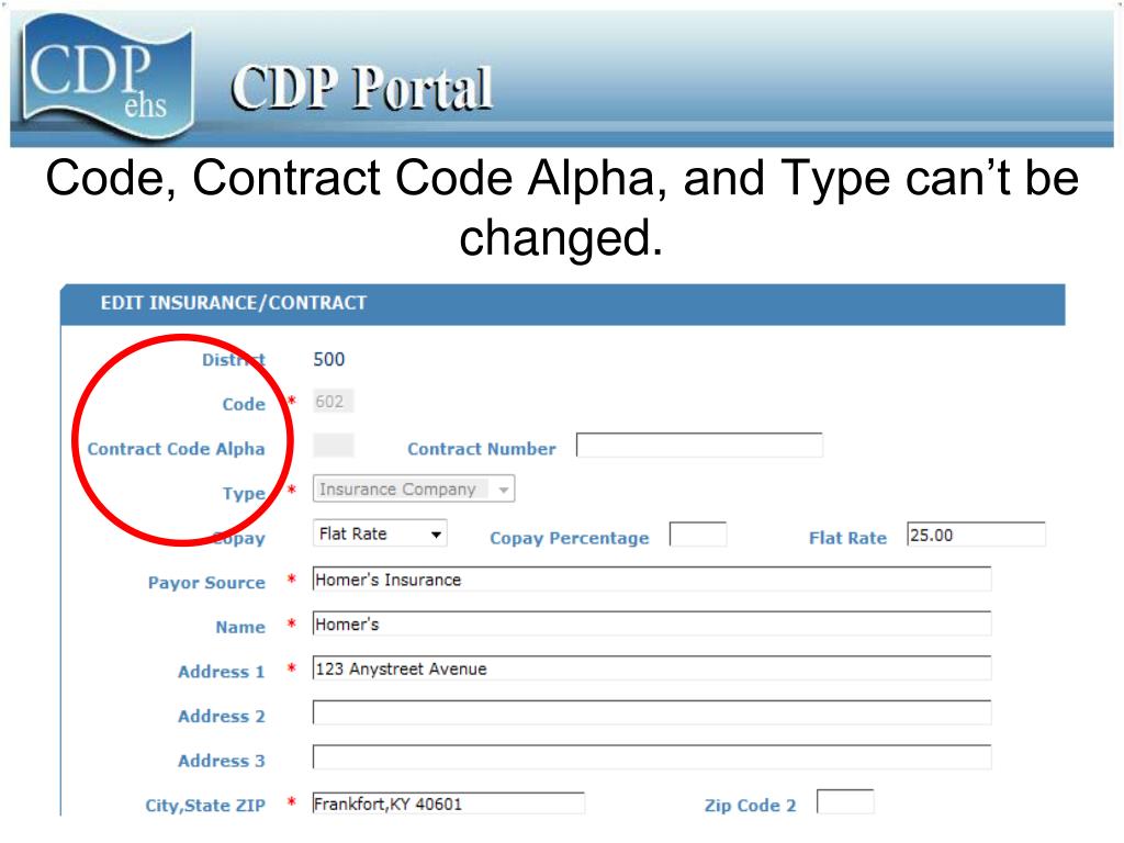 Insurance or Contract Codes. This module is for building new insurance or contract codes, or changing existing codes. On the portal page, click on Insurance or Contact Search. Insurance or Contract search. Name – enter the Insurance or Contract Name. It is not required.