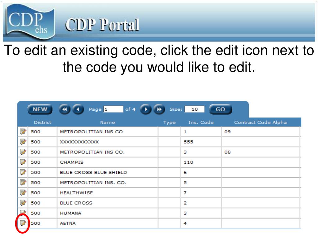 To edit an existing code, click the edit icon next to the code you would like to edit.