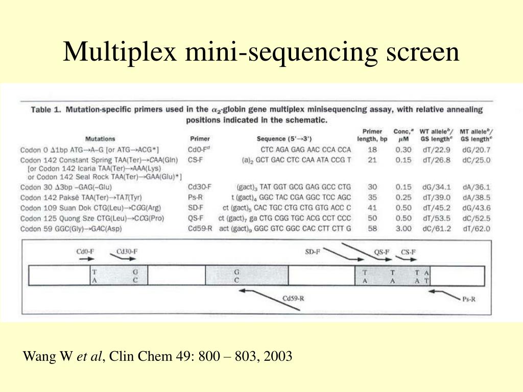 Multiplex mini-sequencing screen Wang W et al, Clin Chem 49: 800 – 803, 2003