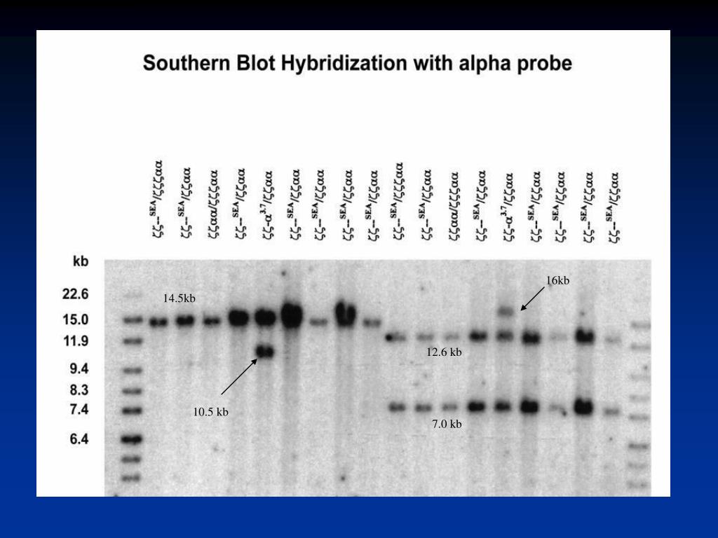 Deletional (common) --SEA -a3.7 -a4.2 Non-deletional (rare) Hb CS Hb QS codon 30 deletion Hb Q-Thailand Hb Westmead a2 codon 31 a2 codon 59 Others a-globin gene mutations