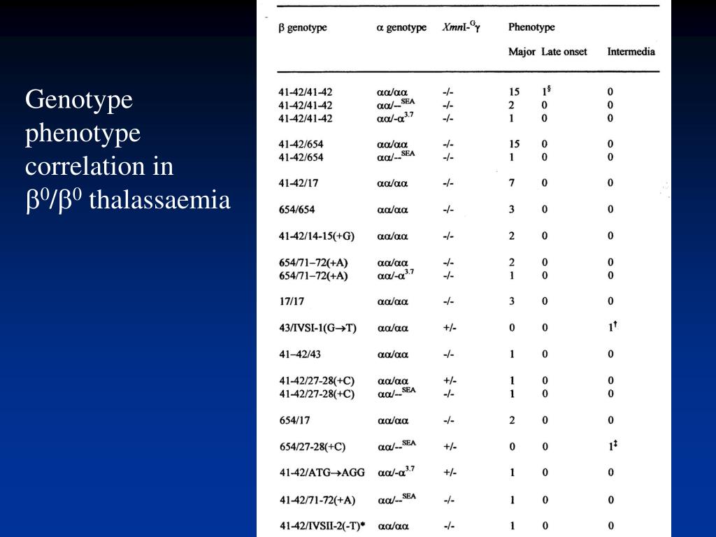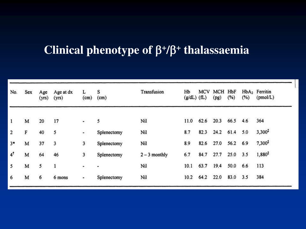 Genetic factors affecting disease severity • Nature and severity of b-globin mutation • Co-inheritance of a-thalassaemia or triplicated a-globin genes • Genetic determinant(s) for enhanced g-globin chain production