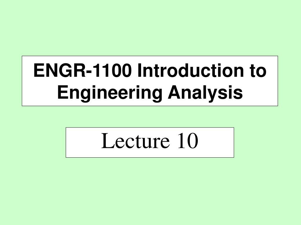 ENGR-1100 Introduction to Engineering Analysis. Lecture 10. Previous Lecture Outline. Vector representation of a moment: - Moment of a force about a point. -Moment of a force about a line. Lecture outline. Couples. Resolution of a force into a force and a couple. F. F. A Couple.