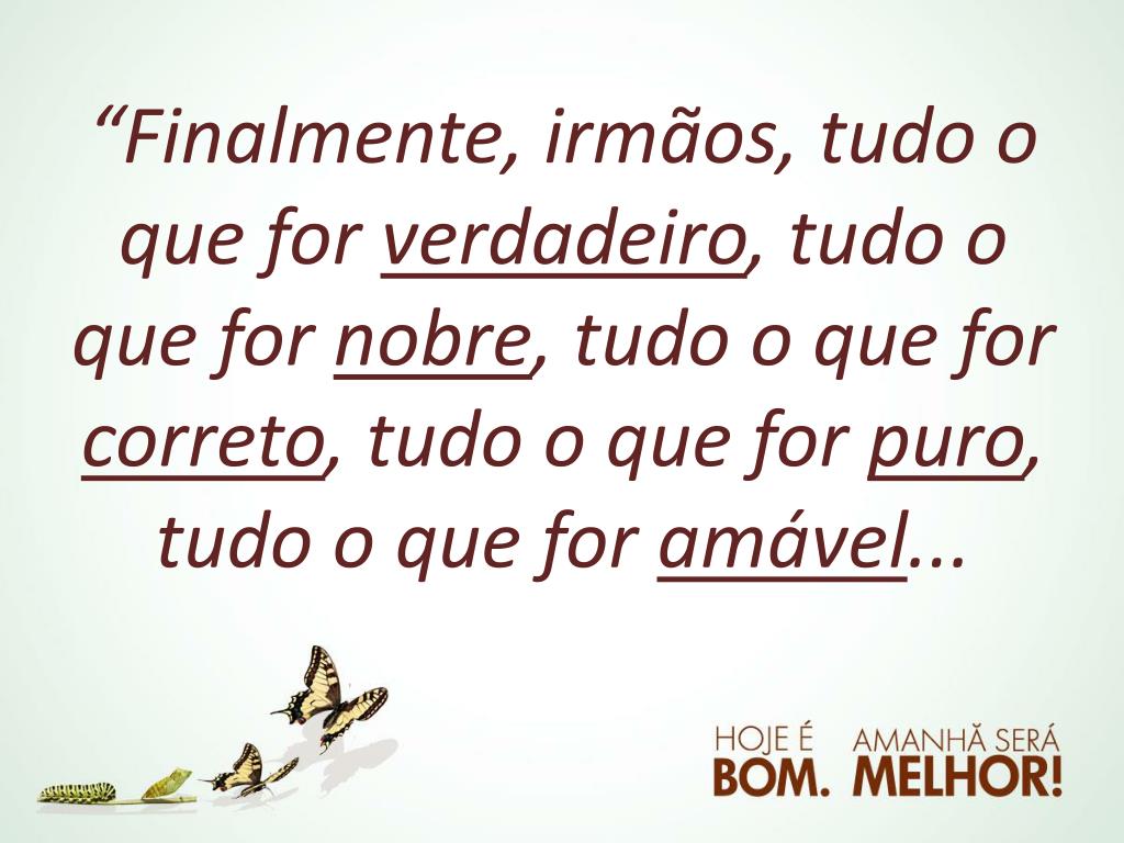 “Finalmente, irmãos, tudo o que for verdadeiro, tudo o que for nobre, tudo o que for correto, tudo o que for puro, tudo o que for amável...